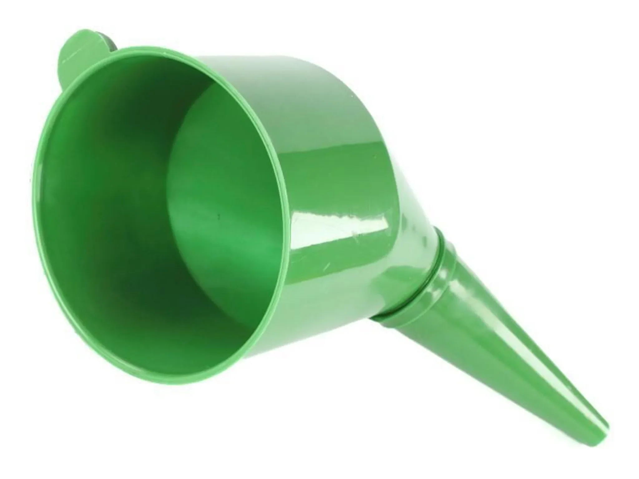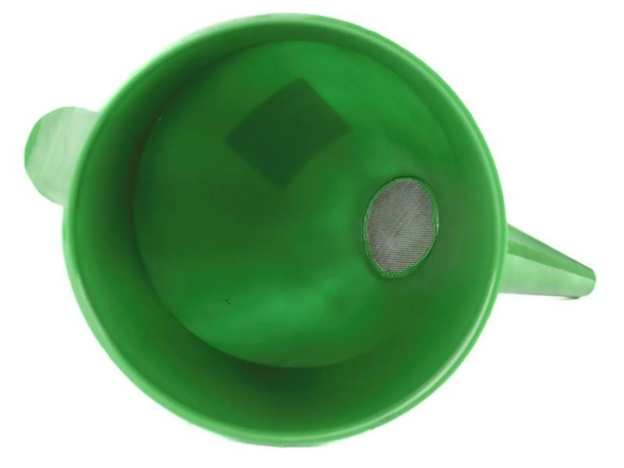 Der optimierte Neigungswinkel sorgt für ein gezieltes und kontrolliertes Ausgießen, ohne dass der Trichter abgestützt werden muss. Ein integrierter Innenfilter verhindert das Eindringen von Schmutzpartikeln – besonders vorteilhaft beim Befüllen von Tanks oder Systemen mit empfindlicher Technik.