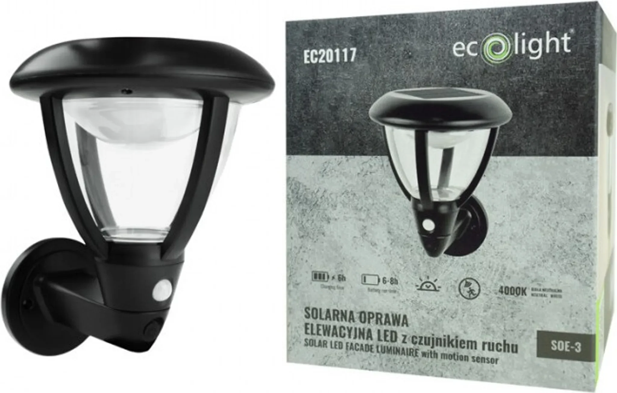 Produktinformationen "Eco Light Solar-LED-Fassadenleuchte SOE-3 – Schwarz, 4000 K, IP44"