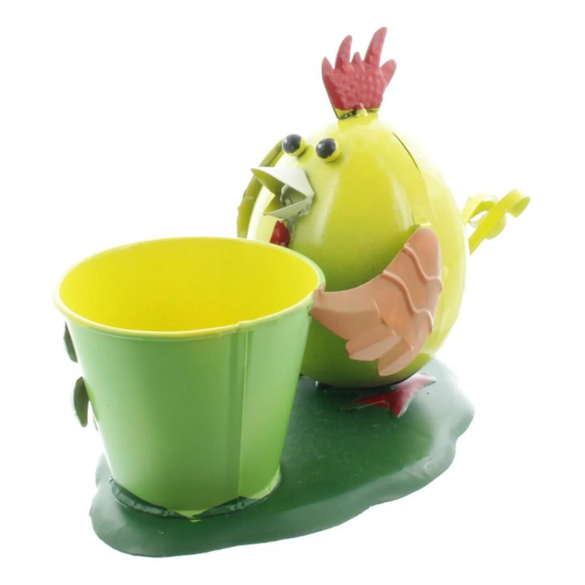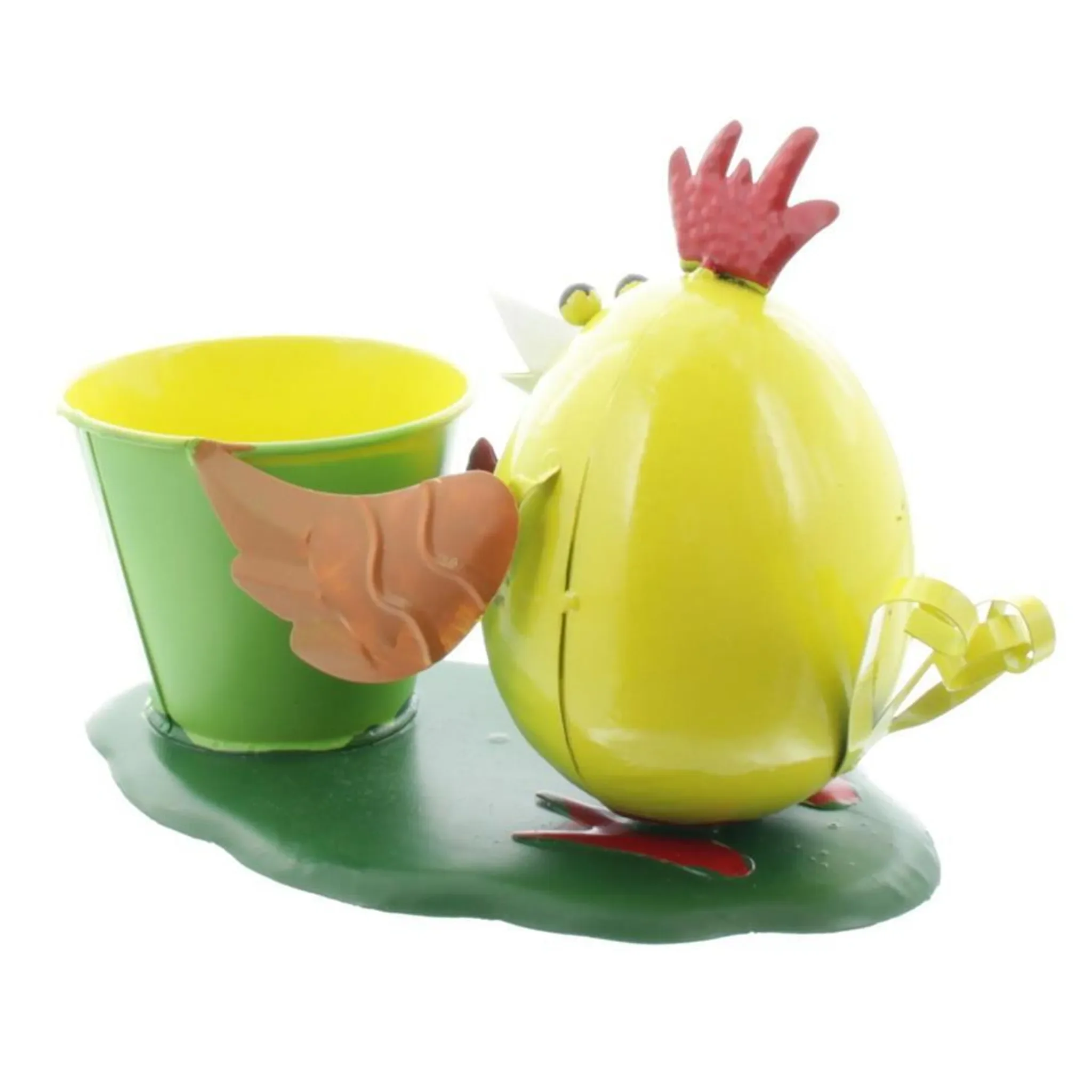 Highlights: Frühlingshafte Optik, dekorativer Blumentopf, freundliche Farbgebung, robuste Metallausführung.