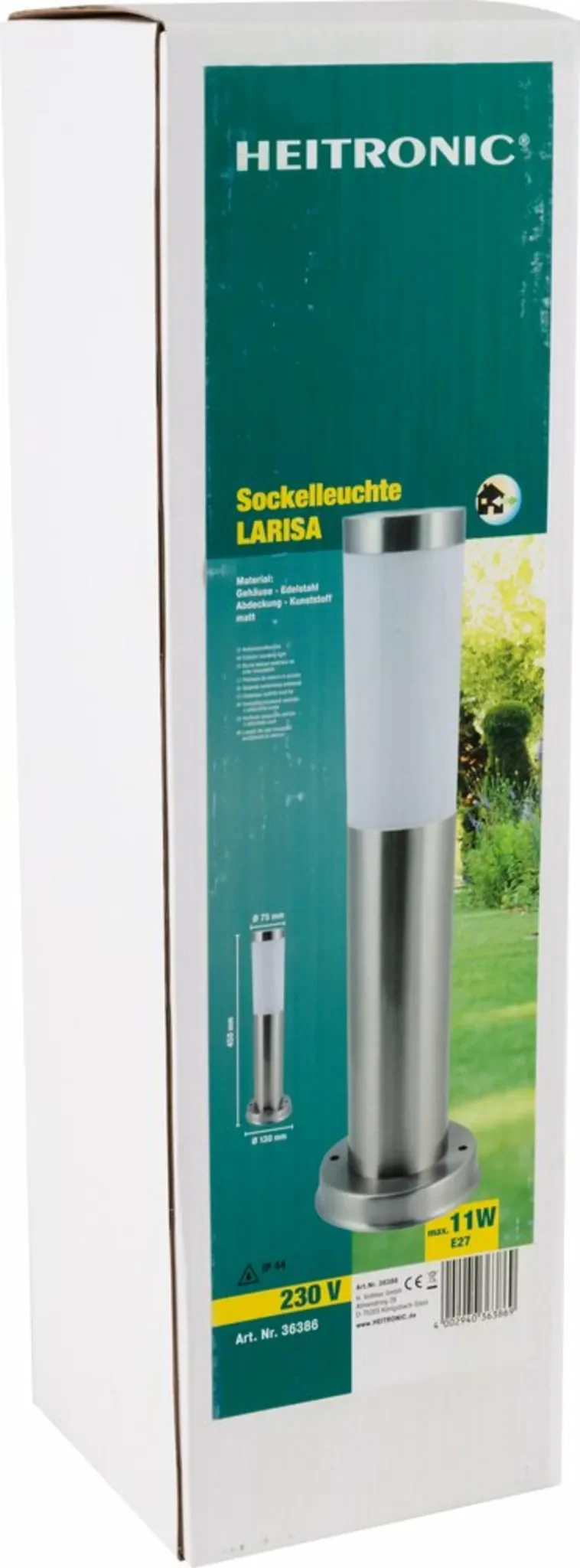 | Im Paket | 1 × Heitronic LARISA Außen-Standleuchte (Leuchtmittel nicht enthalten) |