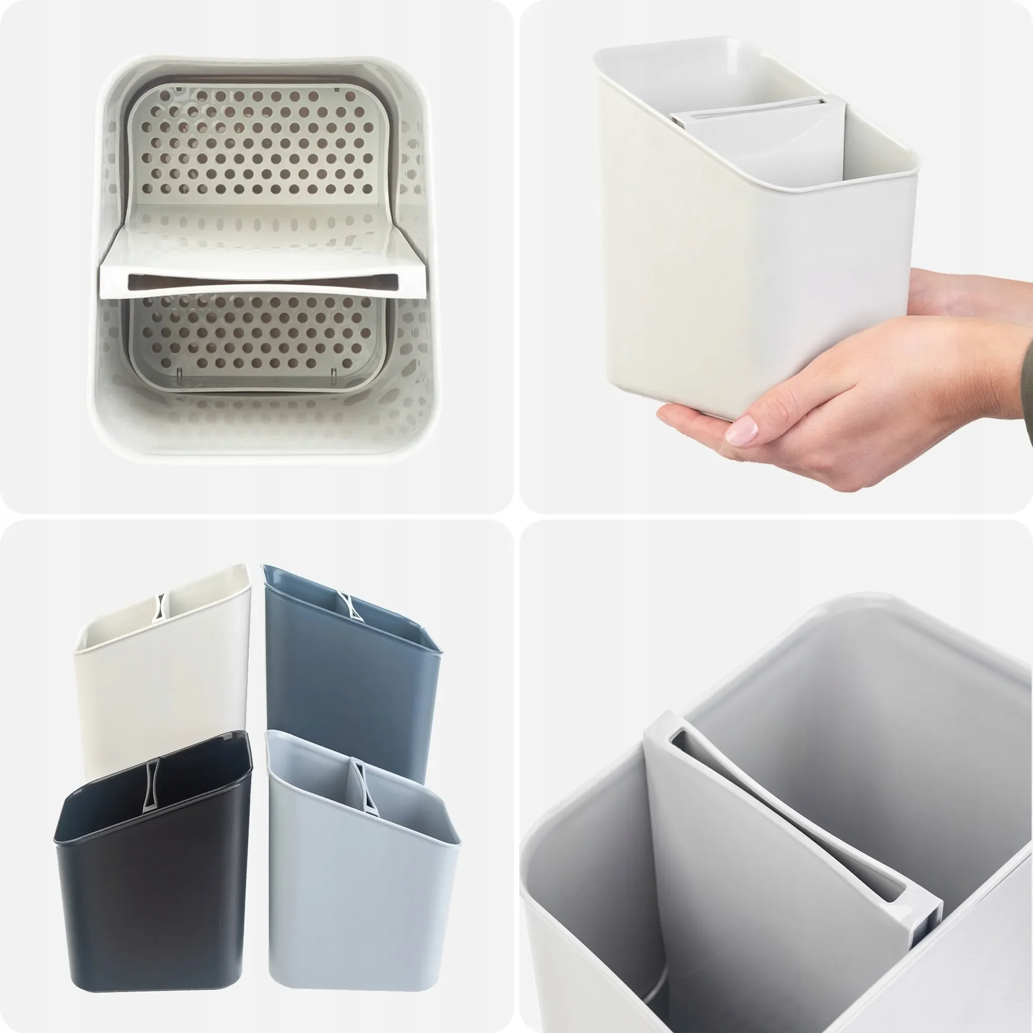 Highlights: Kompakte Stellfläche, leicht zu reinigen, herausnehmbarer Einsatz, formstabil, modernes Design, ideal für Besteck & Utensilien.