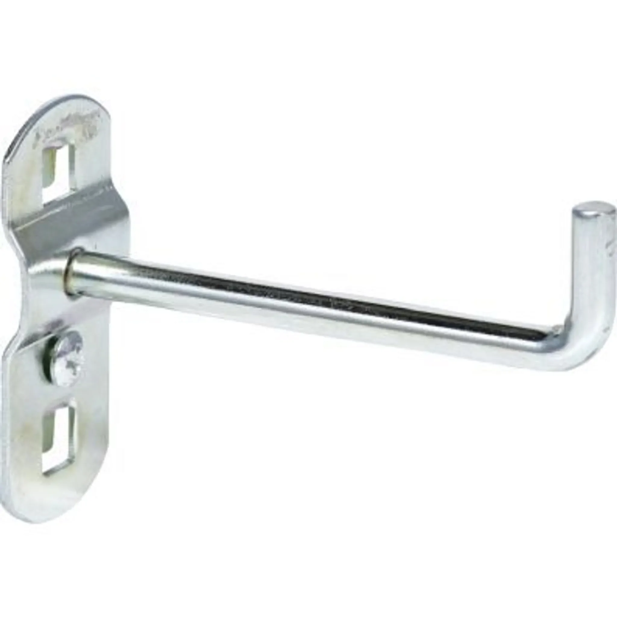 Der robuste Werkzeughalter von KS Tools mit senkrechtem Hakenende eignet sich ideal zur geordneten Werkzeugaufbewahrung an gängigen Lochwänden. Durch die stabile 90°-Biegung bleibt das Werkzeug sicher hängen, während die verzinkte Oberfläche zusätzliche Korrosionsbeständigkeit bietet.