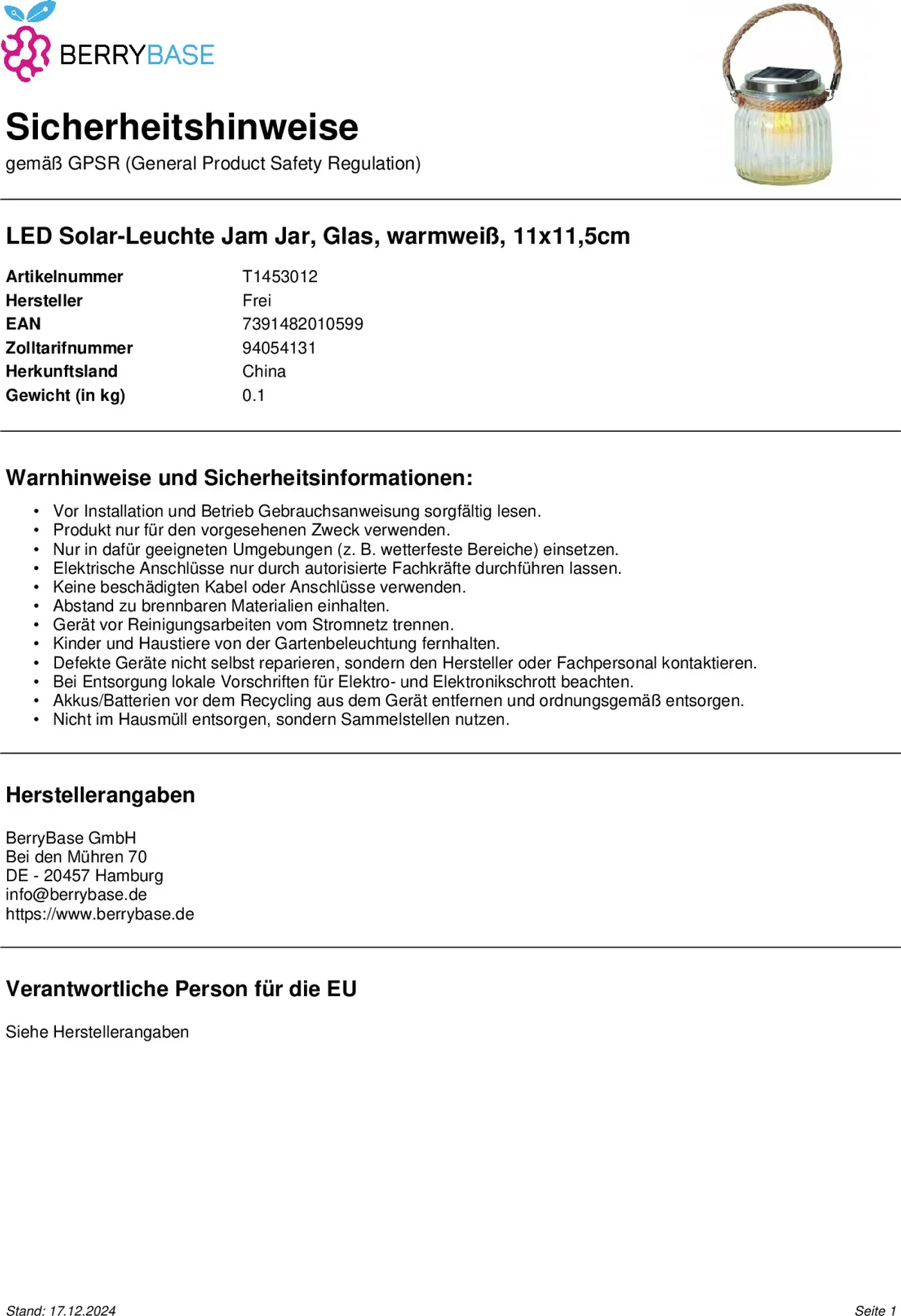 | Im Paket | 1 × LED-Solar-Leuchte Jar, 1 × wiederaufladbare Batterie (600 mAh) |
