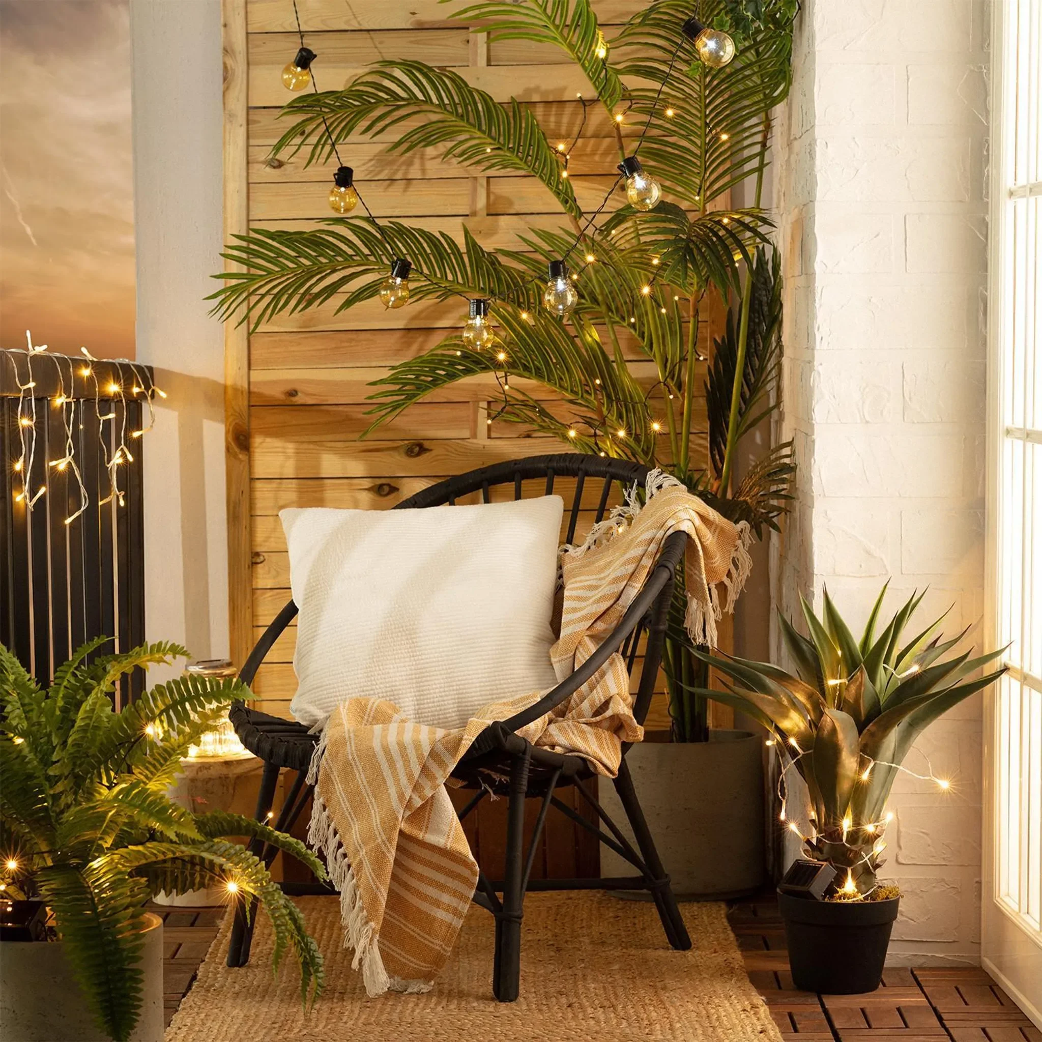 LED-Girlande Solar Lilac 5m lädt sich über Solarenergie auf. Solarpanel lässt sich flexibel platzieren, entweder verschraubt oder als Leuchte. LEDs strahlen in alle Richtungen mit 360° Betrachtungswinkel. Perfekt für Garten, Terrasse, Tor, Hof, Rasen oder Baum. Robust, langlebig und tragbar – ideale dekorative Ergänzung.