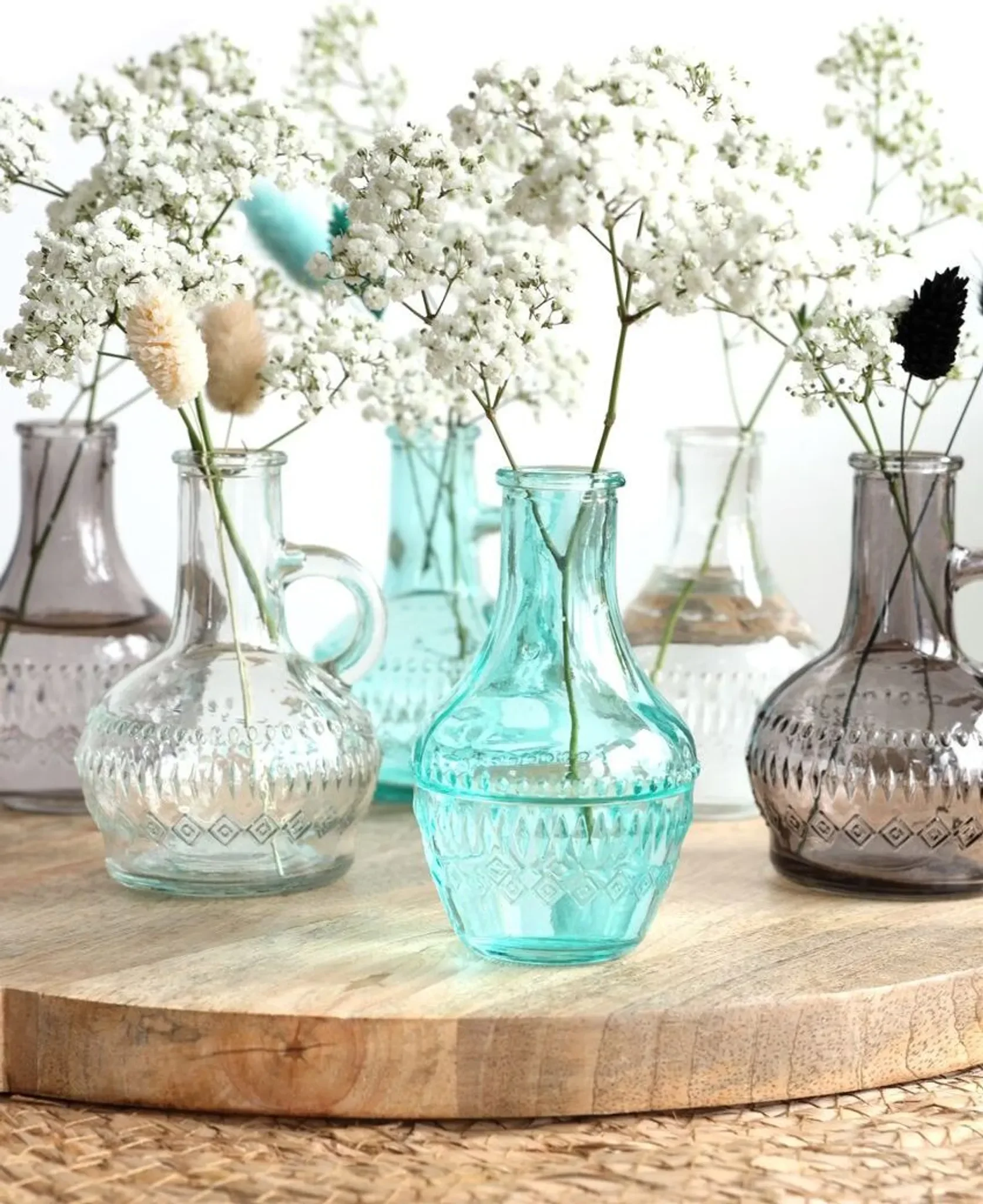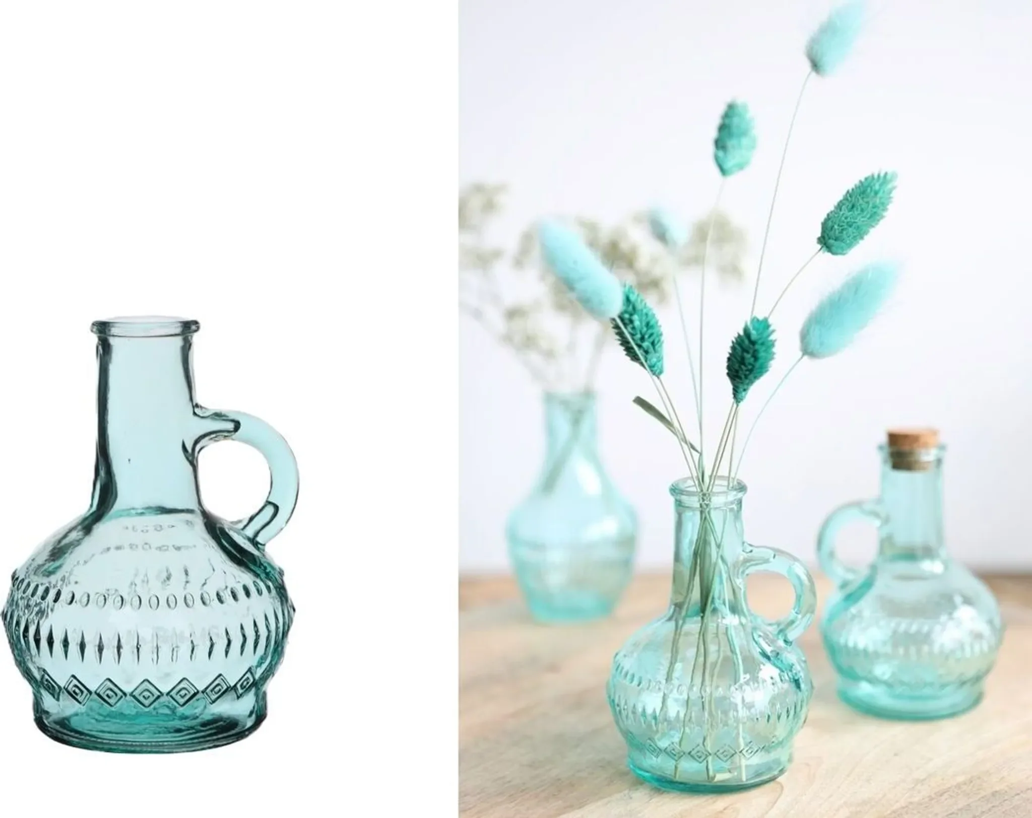 Die kleine Glasvase „Lille“ von NaDeco bringt fröhliche Boho-Atmosphäre in Wohn- oder Geschäftsräume. Mit ihrer kompakten Größe eignet sie sich sowohl für Einzelarrangements als auch für stilvolle Gruppen-Dekorationen auf Tischen, Sideboards oder Fensterbänken.