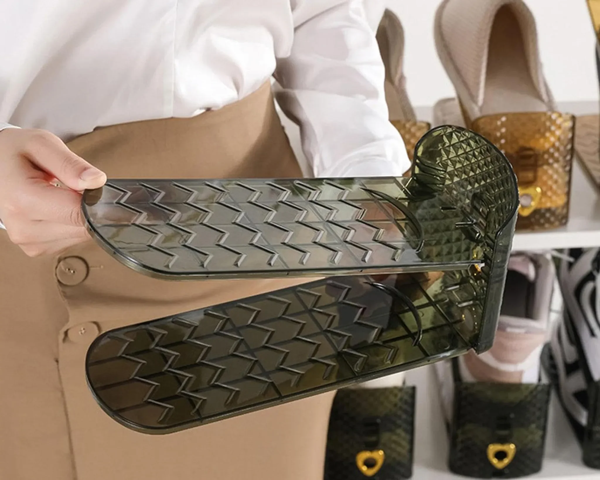 Highlights: Platzsparend, modern, flexibel einstellbar, ideal für Sneaker, Ballerinas & Kinderschuhe.